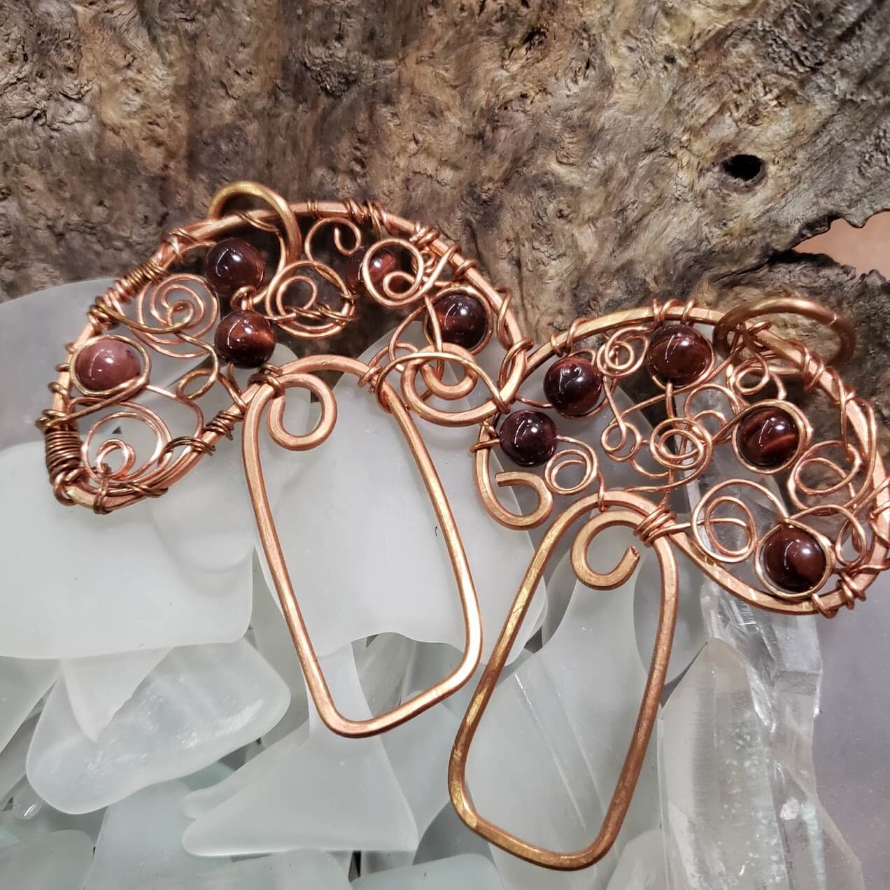 Copper is the great conductor and the metal of the magician. It amplifies the energies of the stones it accompanies. It is excellent for channelling and grounding and, thus, is considered the conduit between heaven and earth. Copper has long been used to aid tissue repair, blood support, and increase vitality. The larger gauges of copper used in my pieces have been reclaimed from castaway wiring, supporting my eco-friendly mission: "Jewelry with a re-purpose!".